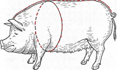 Для извлечения верных и точных обмеров свинью следует вынудить правильно стоять: голова не должна свисать, а поднята вровень спины, ноги — вертикально, прямые. Ленточным сантиметром меряют длину тела от хвостового корня до затылочного гребня свиньи, а после уже охват грудной клетки за лопатками, области измерений изображены на фото ниже.