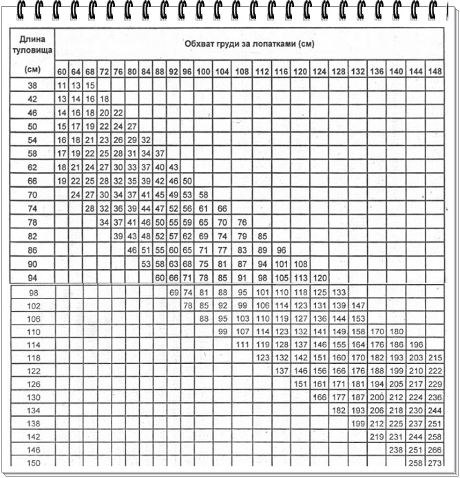 Для установления наиболее точного веса по окончании обмеров свиньи, сведения совмещают с цифрами в ниже приведенной таблице, и сопоставляют вес свиньи на пересечении 2-х линий (вертикальной и горизонтальной).